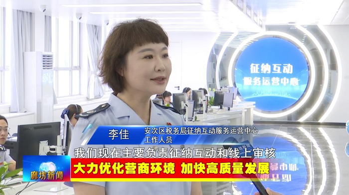 安次區(qū)稅務(wù)局征納互動服務(wù)運營中心工作人員李佳:我們現(xiàn)在主要負(fù)責(zé)征納互動和線上審核,我們現(xiàn)在有12個征納互動坐席,主要為納稅人提供遠(yuǎn)程指導(dǎo)、遠(yuǎn)程幫辦、遠(yuǎn)程代辦業(yè)務(wù),像這類業(yè)務(wù)我們每天平均每人接待30余人