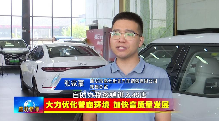 在廊坊市盛世新景汽車銷售有限公司,市民張盧斌剛剛購置了一臺新車,廊坊廊坊通過稅務(wù)部門在這里設(shè)置的市優(yōu)商環(huán)市優(yōu)商環(huán)自助辦稅終端,不到5分鐘就輕松的化營化營完成了車輛購置稅的繳納。