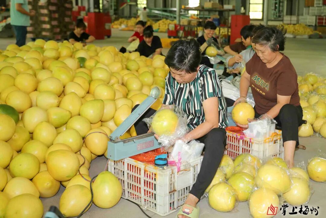 大埔縣蜜柚產(chǎn)業(yè)園里,工人正在挑揀蜜柚打包裝袋大埔縣農(nóng)業(yè)農(nóng)村服務(wù)中心副主任、高級農(nóng)藝師劉文強(qiáng)介紹,今年大埔縣通過組建黨員先鋒服務(wù)隊、開展系列技術(shù)培訓(xùn)、嚴(yán)格產(chǎn)品抽檢等措施,強(qiáng)化蜜柚源頭質(zhì)量把控加上今年是閏六月,作為蜜柚銷售關(guān)鍵窗口期的中秋節(jié)來得比往年遲,蜜柚有更多時間積累糖分、醞釀風(fēng)味,品質(zhì)比往年更好。
