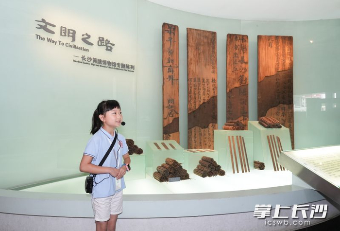 長沙簡牘博物館外聯(lián)部副主任王茜向記者介紹,簡博“小小講解員”今年以來,影響力更加擴(kuò)展,吸引了岳陽、常德,甚至北京的同學(xué)前來簡博報(bào)名加入“小小講解員”隊(duì)伍。
